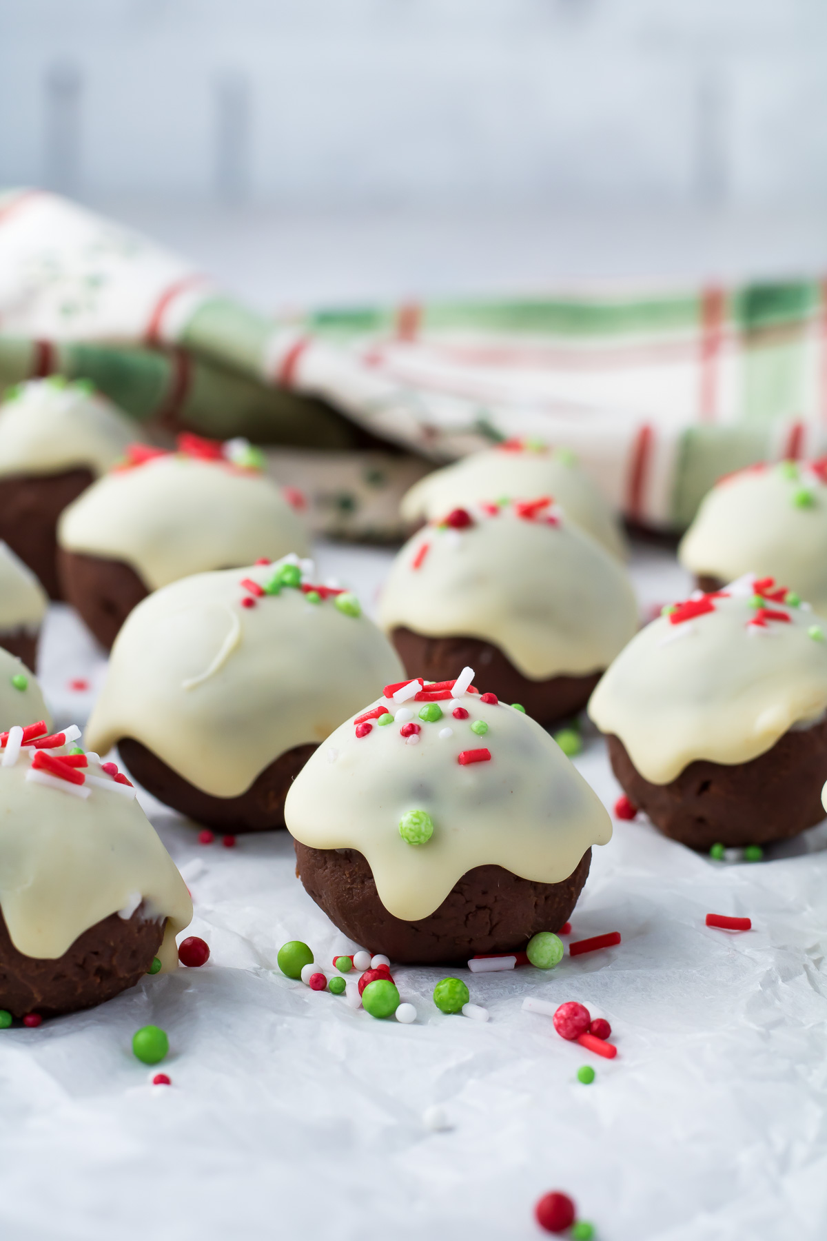 - You can either completely cover the truffle or just dip half to make Christmas pudding truffles.