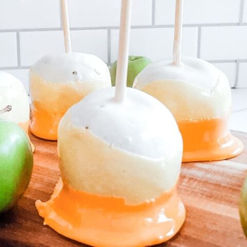 Layered just like the classic Halloween treat, these Candy Corn Candy Apples are a delicious and festive looking homemade sweet!