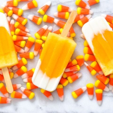Our Candy Corn Popsicles make a delicious fall treat, especially for Halloween entertaining. We use fresh fruit and yogurt for the layers. Healthy whole food ingredients for a nutritious dessert.