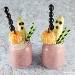 Celebrate Halloween with this fun and easy healthy Halloween Freakshake recipe! With cute spooky fruit toppers that kids will love!