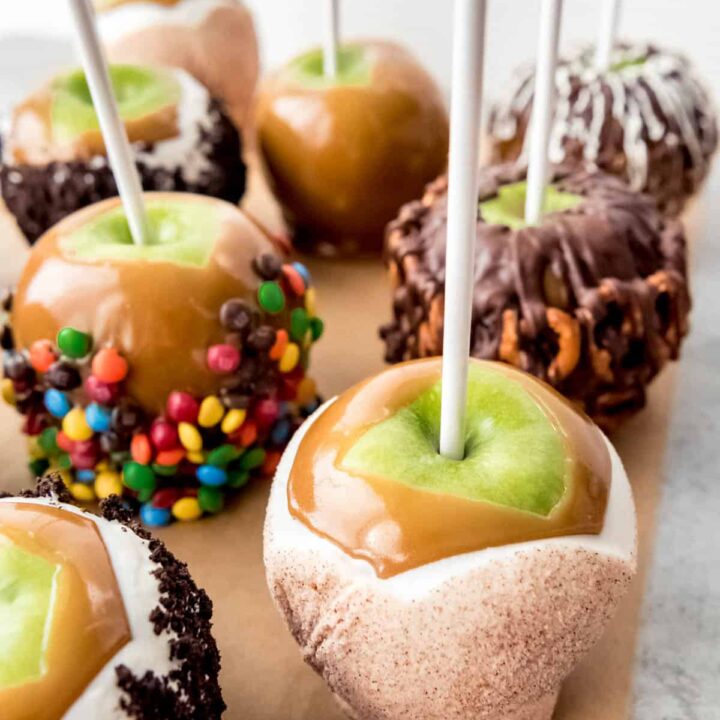 Gourmet Homemade Caramel Apples are easy and fun to make! The sweet, buttery caramel is perfect with crisp, tart Granny Smith apples, and you can decorate them with as many crunchy, chewy, nutty, or crispy toppings as you want!