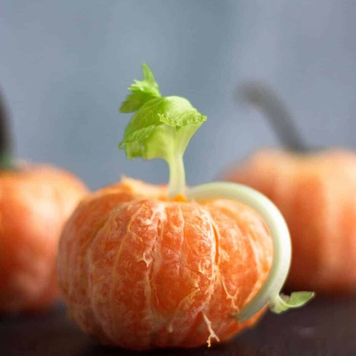 These Clementine Pumpkins are a healthy, fun and a nutritious Halloween snack for kids! They are also extremely easy and quick to make, which is always a big plus.