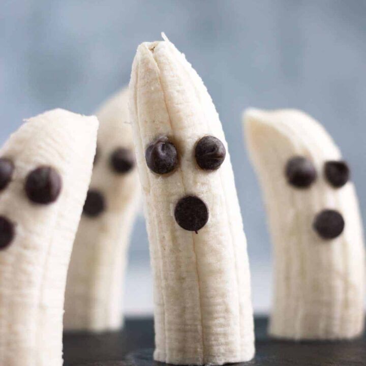 Let's do Halloween with vegan, gluten-free, refined sugar-free treats! Can it be done? I say absolutely! These Banana Ghosts add plenty of spooky silliness to your table, and they're so simple to make that kids can do it on their own!