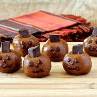 Make this cute healthy Pumpkin Candy recipe for Halloween with pumpkin puree, dates, and almond butter in less than 30 minutes. Kids will love them!
