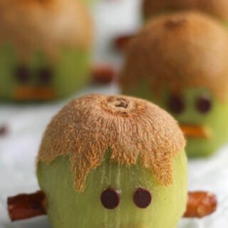 These Franken-kiwis are an easy, really cute, healthy Halloween treat! And so fun to make – like yummy little Halloween craft projects! They’re perfect for Halloween fruit trays, fun after-school snacks, and as edible Halloween party decorations!