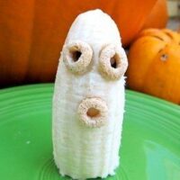 Grab a banana, Cheerios, and chocolate chips (optional) and have yourself a healthy snack or breakfast Banana Ghost!