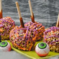 A spooky twist on a classic treat — both kids and grown-ups will love these crazy colorful Halloween Caramel Apples!