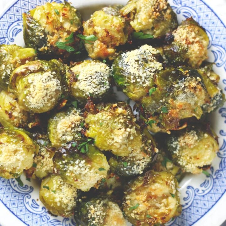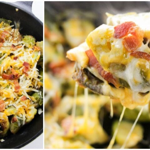 It doesn’t get more delicious than these low carb cheesy Brussels sprouts topped with crispy bacon! Even kids will love them!