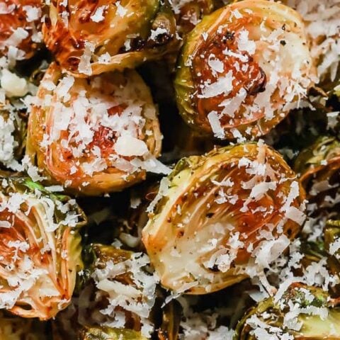 Brussel Sprouts with bacon and parmesan cheese are the perfect holiday side. They’re also low carb and keto friendly!