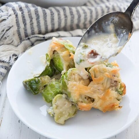 Cheesy Brussels Sprout Casserole is a rich and hearty keto side dish. This family favorite is a delicious way to round out all of your holiday meals.
