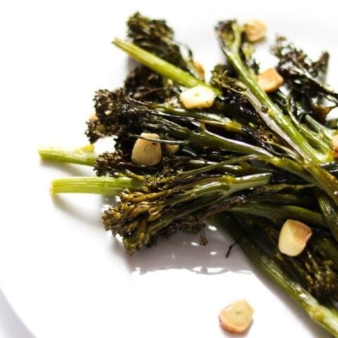 Roasted tenderstem broccoli (also known as broccolini or baby broccoli) is delicious when cooked until just crisp with garlic, olive oil, salt, and pepper. Ready in under 30 minutes, it’s a perfect easy side!