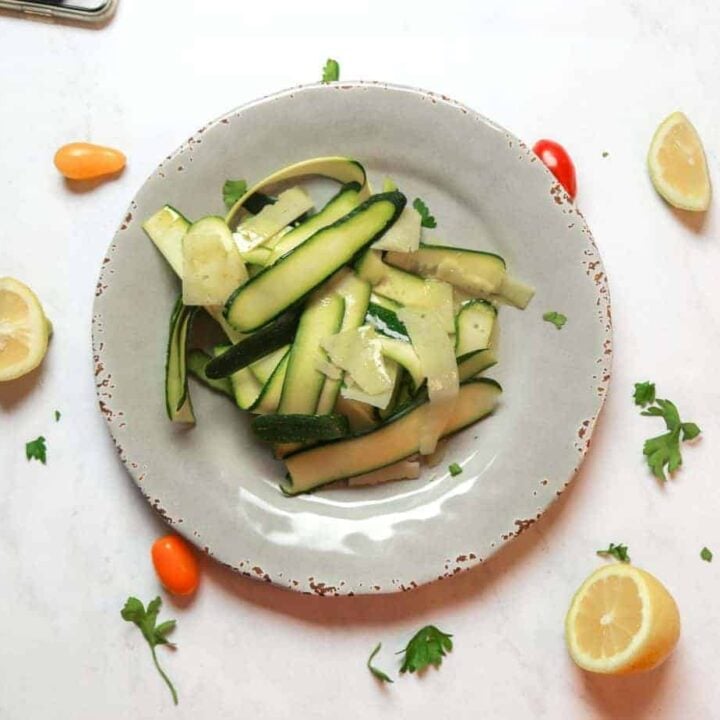 This easy 4-ingredient Shaved Courgette Salad is the perfect Christmas keto side dish. You can serve it as a salad on its own or as a starter.