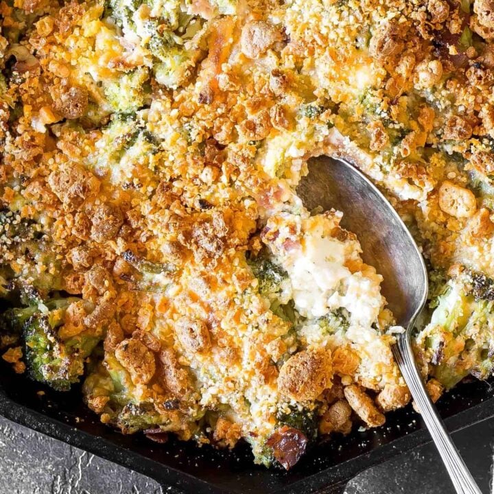 This Cheesy Keto Broccoli Casserole with bacon is the ultimate low-carb casserole, perfect as a side or covered dish for any occasion!