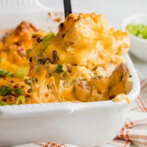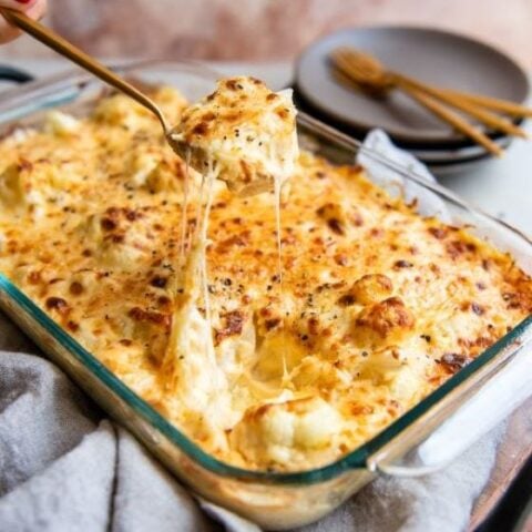 Skip the “mac” and you won’t even miss it with this simple, delicious recipe! It’s a spin on classic comfort food, and this four-cheese cauliflower mac and cheese casserole is just like the real thing, with a lot less carbs.