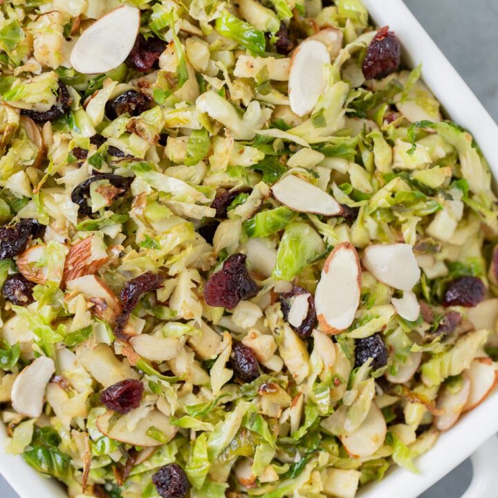 This Shaved Brussels Sprout Salad Recipe is a delicious healthy side dish. Vegan, keto, paleo, and Whole30, it goes great with any meal!