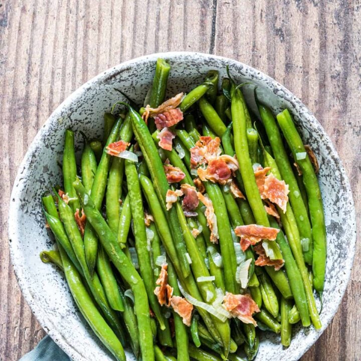 This quick and easy side dish made with fresh green beans is perfect for a weeknight and also pairs well as a delicious healthy side for holiday meals.