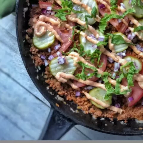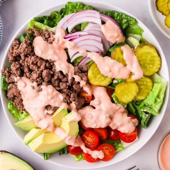 Ready in 20 minutes, this Burger bowl is loaded with an amazing special sauce that you'll want over and over again! Use this mayo recipe for the special sauce if you can’t find a whole30-compliant condiment at the supermarket.