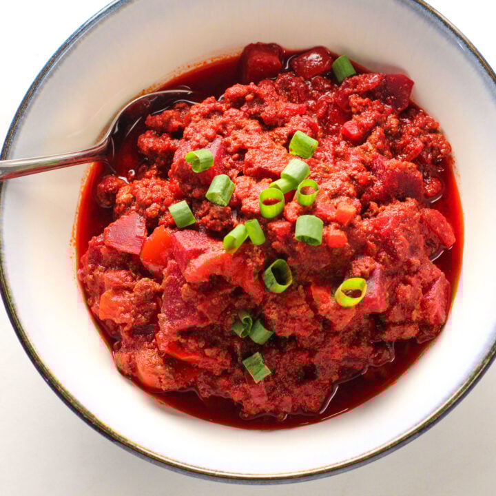 Sneak some bone broth, beets, mushrooms, or even liver into this Superfood Chili to make it even more nutritious!