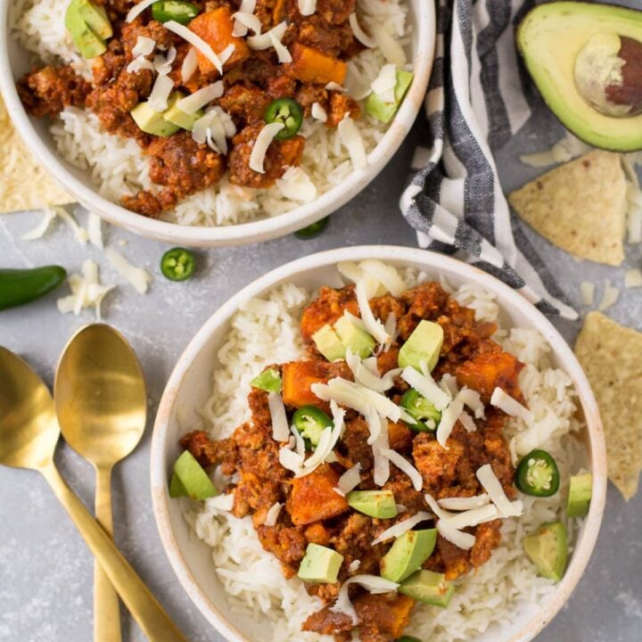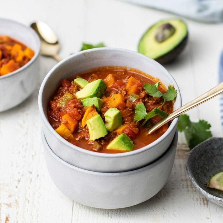 Butternut squash makes this version of Whole30 Chili super hearty and filling with a hint of sweetness.